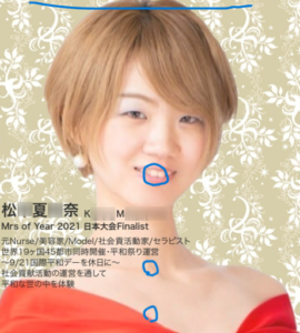 そんな彼女の別名がなんと「M◯s of the Y◯ar 202◯」日本大会ファイナリストの【松◯夏◯奈】さんでは?との、読者様からのご情報を頂きました。